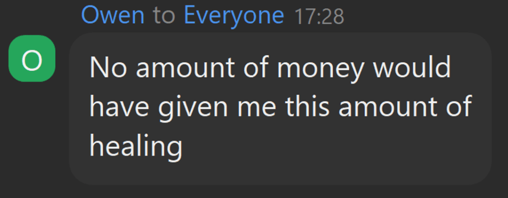This deeper knowledge of and friendship with all my parts so I am more regulated allow me to deal with my children from that point which they deserve - healed. Without this, I would have sunk deeper into "mum guilt".”