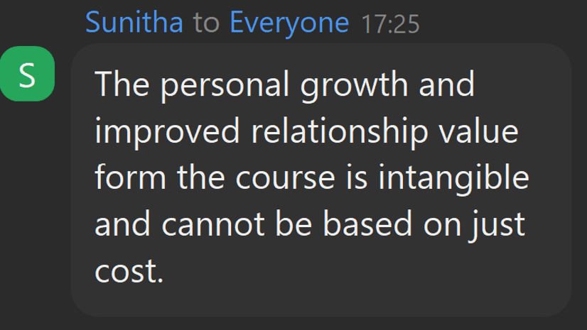 “I have less emotionally reactive episodes at work where most of my stress and burnout came from when I joined the course. My team at work has visibly noticed and appreciated how I’m dealing with my anxiety and collaborating more in difficult meetings and seeking to understand.